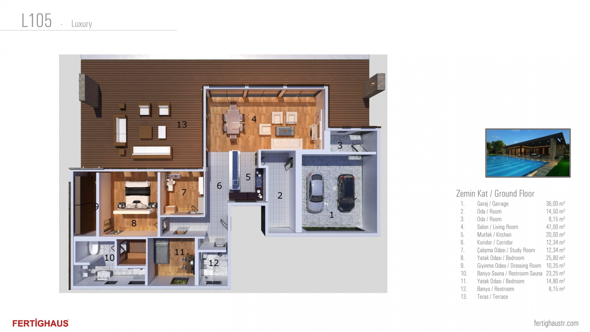 Bu modeli dilerseniz kendi zevkinize de uyarlayabilir, üzerinde isteklerinize uygun değişiklikler yapabiliriz. Dilerseniz tamamen kendi hayallerinizdeki evi tasarlayıp rüyanızı gerçekleştirebiliriz.